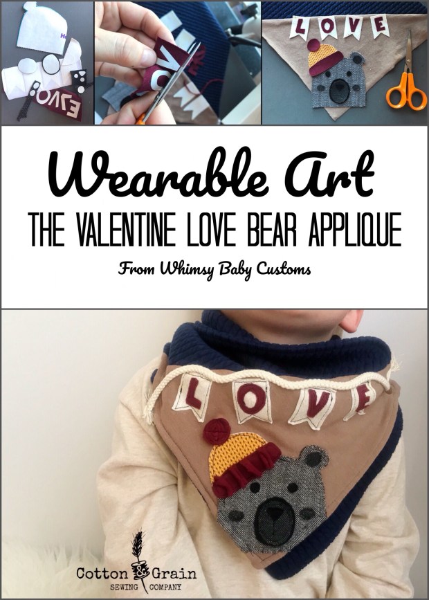 Today though, I’m going to focus on her newest appliqué pattern, The Valentine Love Bear. It’s perfect for all of your Valentine’s Day sewing projects and easily carries over to other parts of the year. You can check out all of her great patterns, including this one, as well as her whimsical line of custom fabrics here: